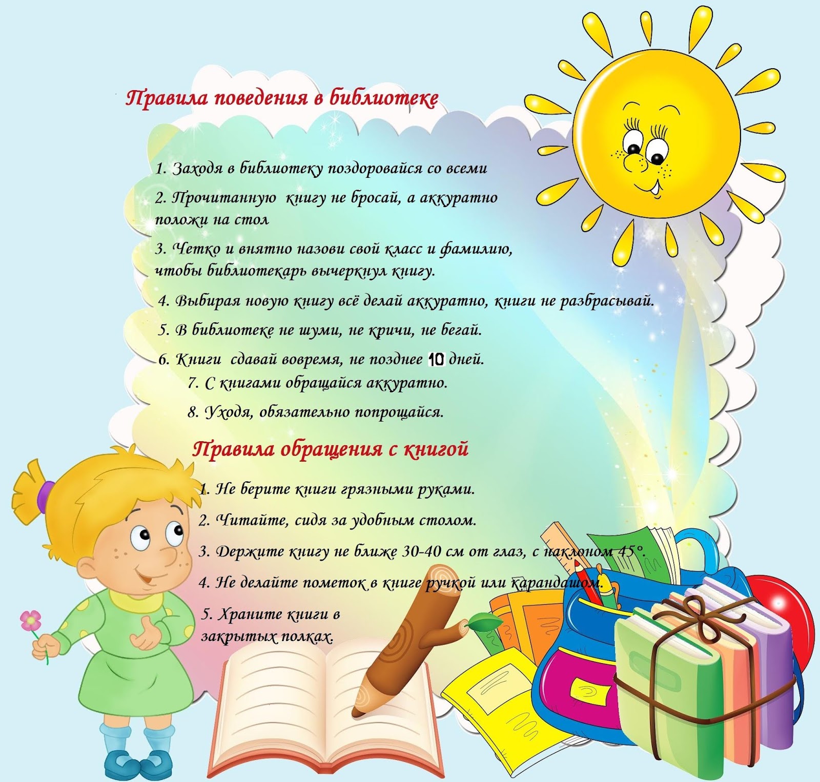 В свободное от уроков время учащиеся могут расположиться в читальном зале библиотеки и почитать любимый журнал или газету, приготовить домашнее задание, найти информацию для рефератов, узнать о поступлении новых книг, посетить культурные мероприятия, проводимые библиотекарем, посетить книжные и тематические выставки.