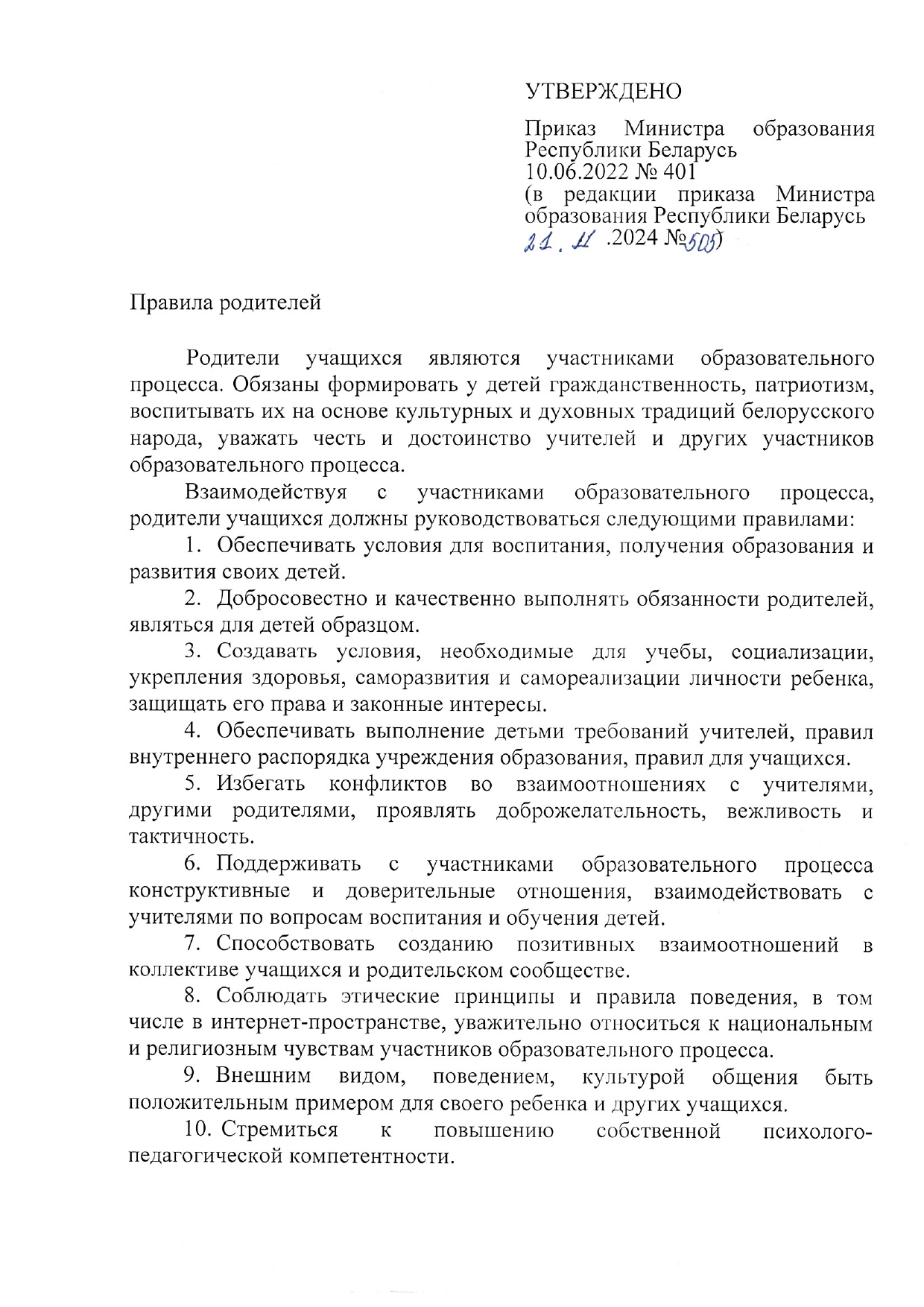 Правила родителей